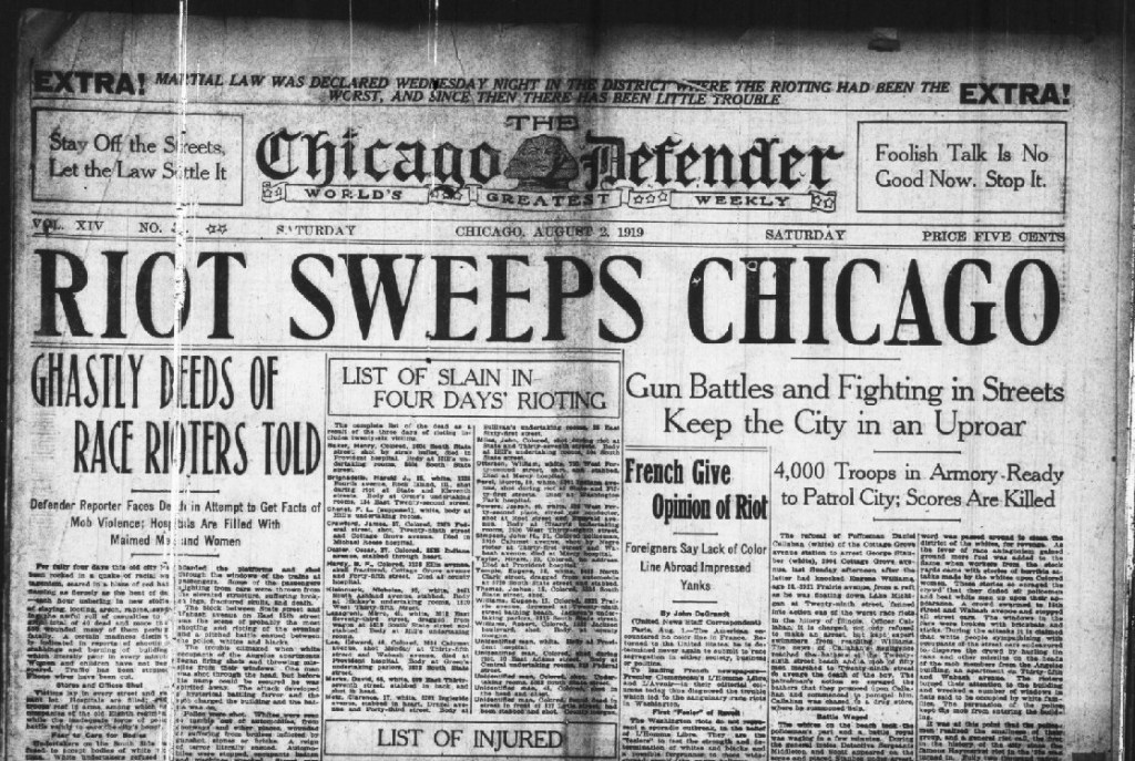 "The state militia was called in to quell the violence on Chicago's South Side during the 1919 race riots", 1919. Chicago Tribune