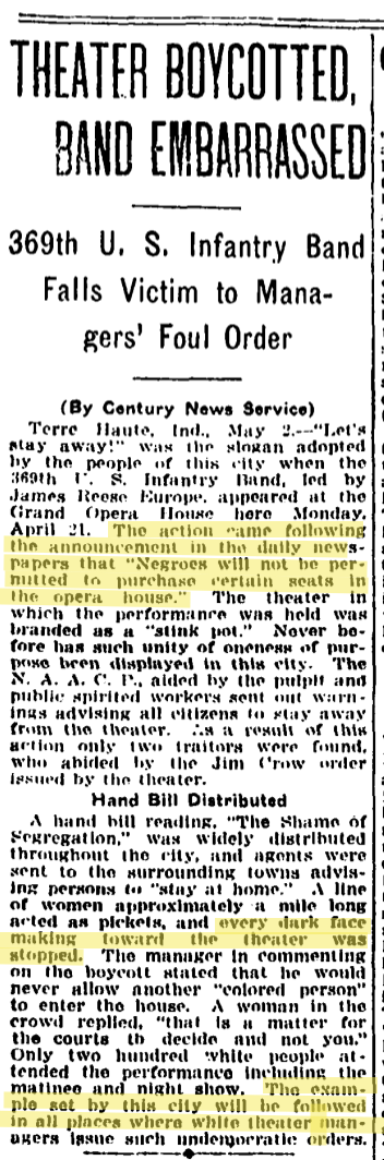 "James Reese Europe and the Harlem Hellfighters fought a “two-front” war. On one side, they had to fight against the Germans, but they also had to fight the racism of their own government. They proved that black Americans could not only fight courageously in war but also be led by black officers. This was especially important because it proved that black people were as smart as white people, and if they were capable of leadership on the battlefield, why couldn’t they take the lead at home? Helping to prove that black people could be leaders helped pave the way for generations of African American soldiers, scholars, business executives, and, now, one U.S. President."