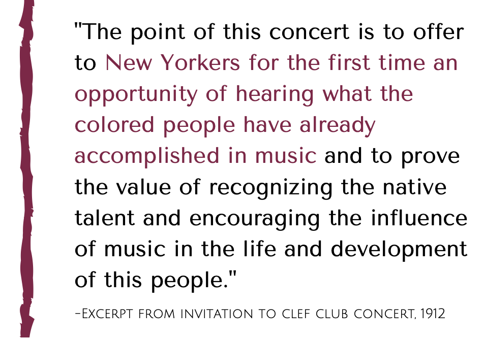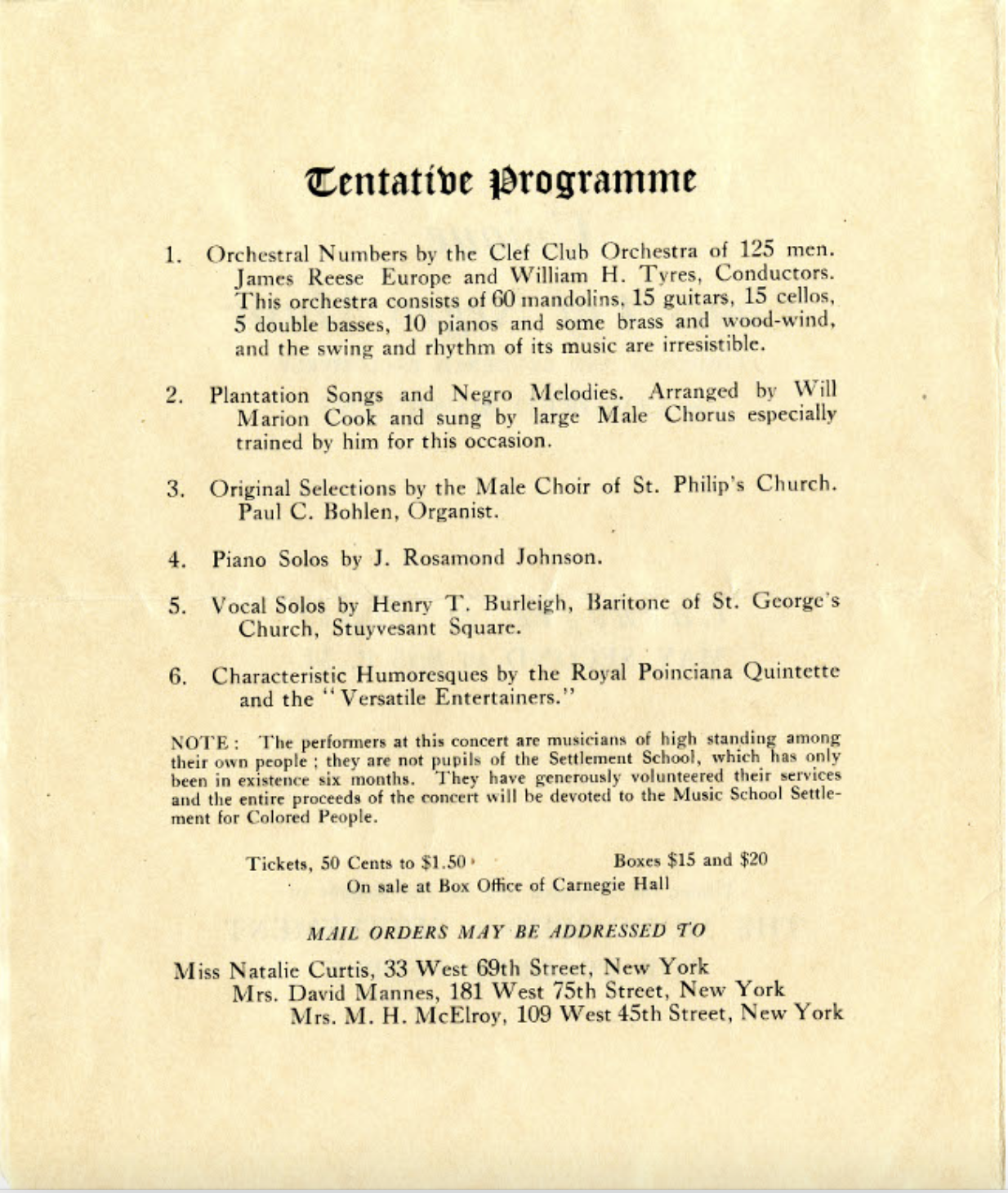 Carnegie Hall program and invitation to a "Concert of Negro Music," presented by the Clef Club, 1912. Carnegie Hall