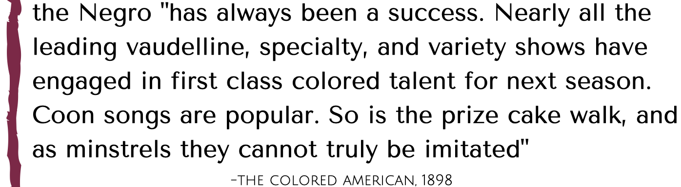 Faced with few opportunities after the Civil War, black performers broke into the entertainment business through minstrelsy, reinforcing stereotypes of African-Americans. Black performers would be boxed into these categories for decades to come.