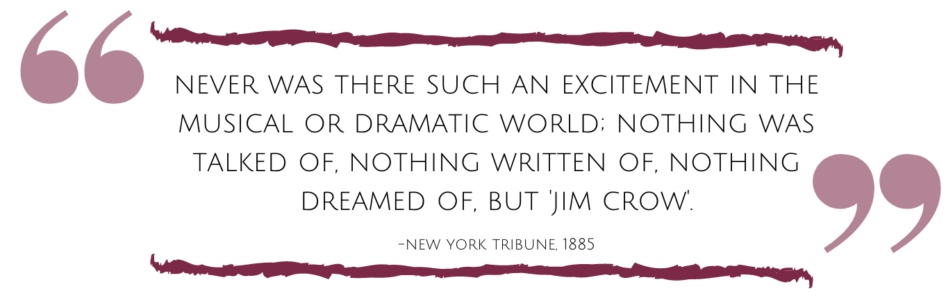 Thomas Rice created the character "Jim Crow" in 1828, when he created the first minstrel show, which mocked and reinforced stereotypes of enslaved people in a performance format.