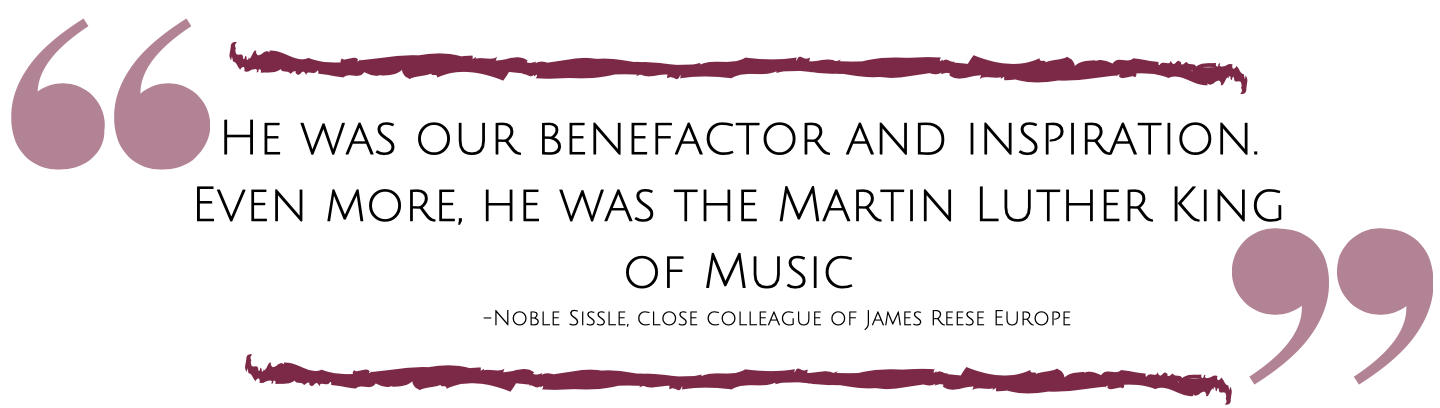 In the early 1900s, discrimination against African-Americans was ubiquitous. African-American composer, conductor, and organizer, Lieutenant James “Jim” Reese Europe acted as a champion for black musicians through a series of vital contributions. As founder of the Clef Club, Europe formed one of the first labor unions and contracting agencies for black entertainers. During WWI, he introduced jazz to the European continent. Lieutenant Europe opened countless doors for African-American musicians, paving the way for a period of black excellence during the Jazz Age.