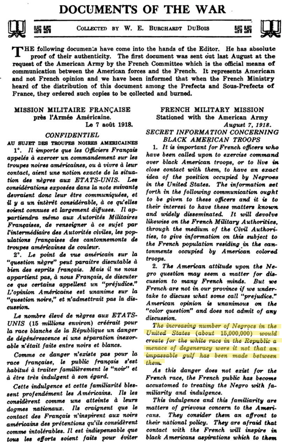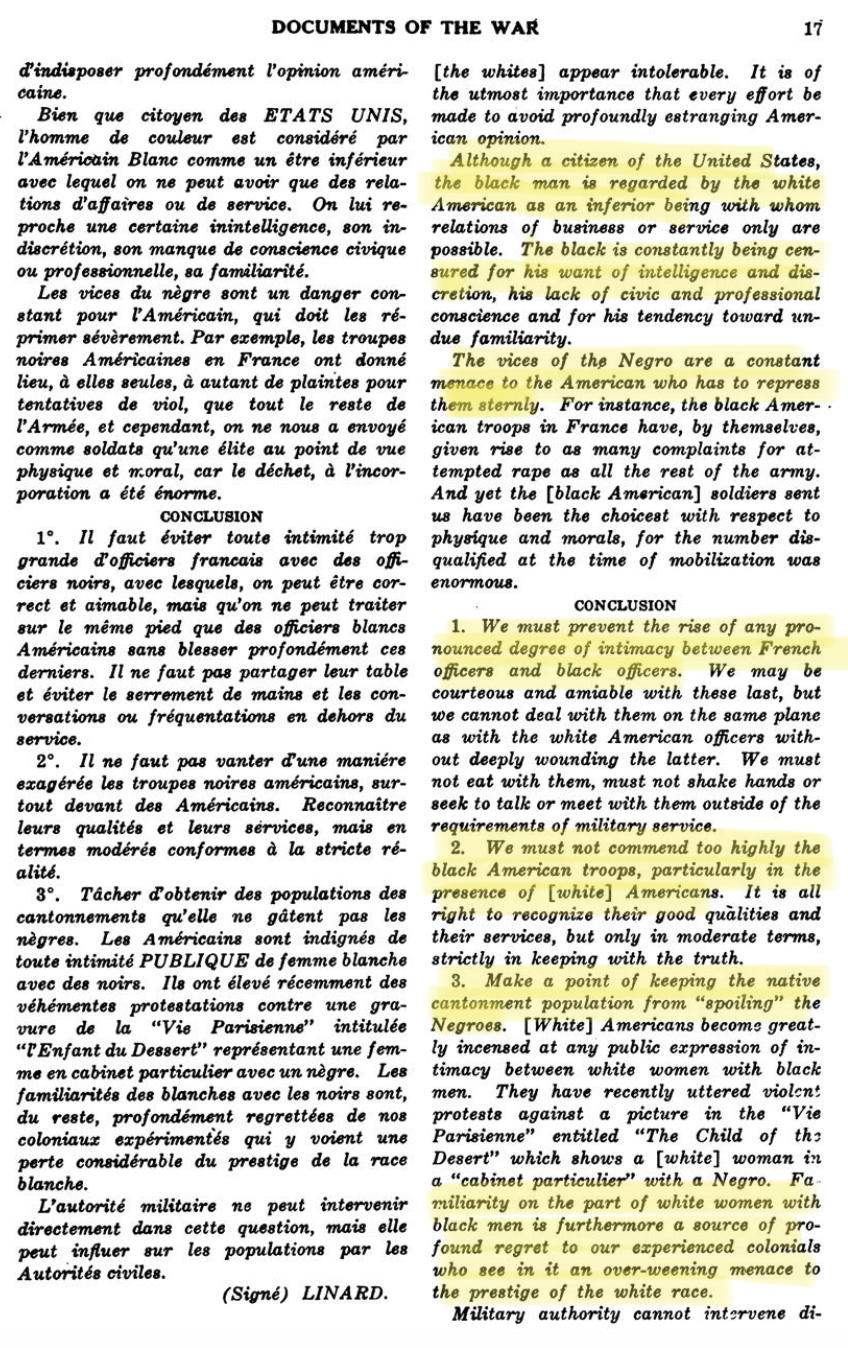 "1. We must prevent the rise of any pronounced degree of intimacy between French officers and black officers...